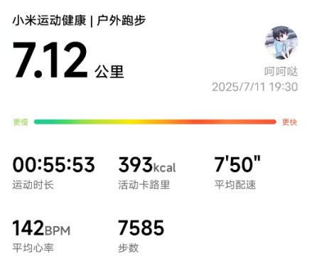 2025/07/07 速度还是没有提上来.心率控制好了一些.