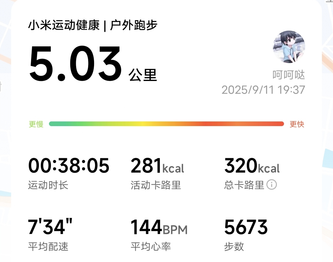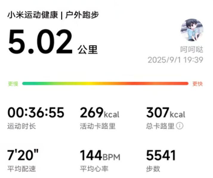 2025/08/22 5公里轻松拿下,感觉速度又快了起来